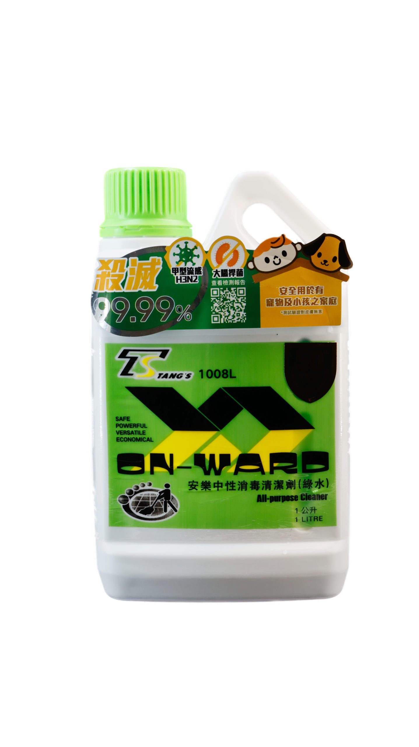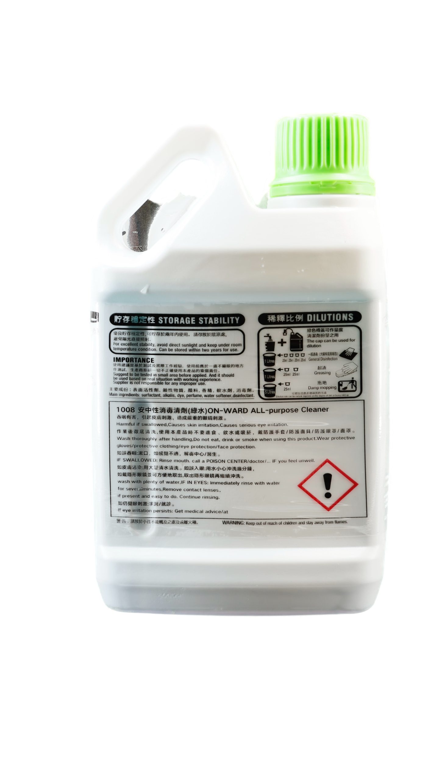 1008安樂中性消毒清潔劑(綠水)是一種潔力特強 而又有清新氣味的清潔劑。獨特配方可作不同 稀釋比例使用,專門針對不同程度的污漬和油 清。1008安樂中性消毒清潔劑(綠水)特別適用於 日常保養清潔而又不損害蠟面。
